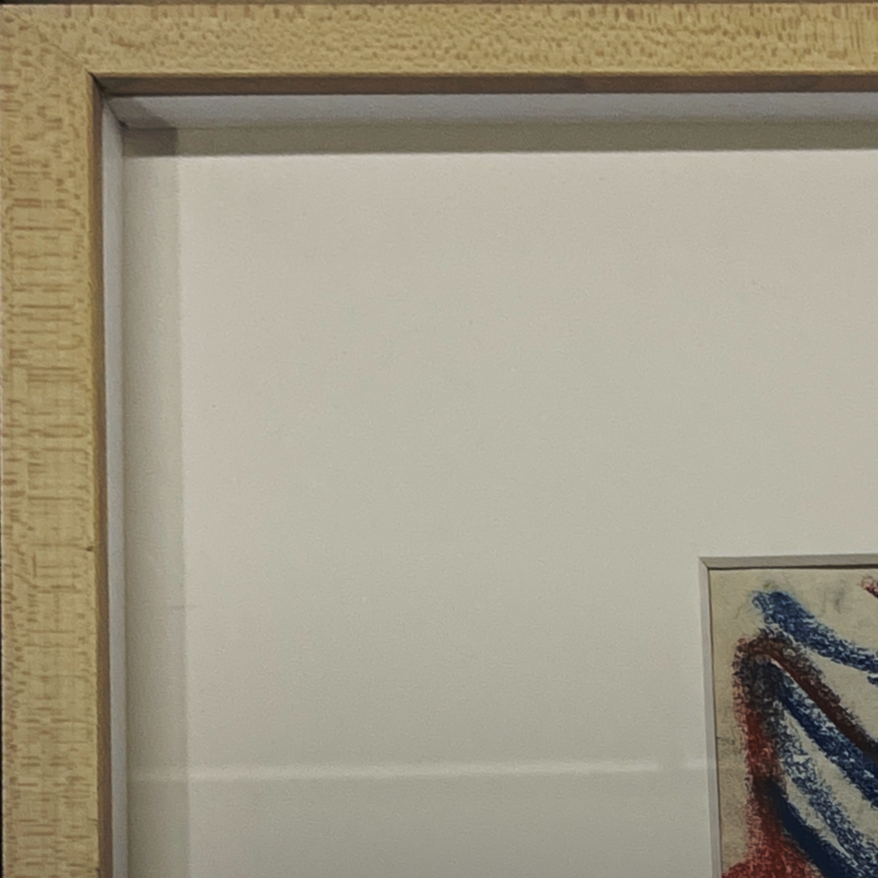 Framed in a solid maple frame with a clear finish behind 99% UV-blocking art glass using strictly conservation-grade materials.