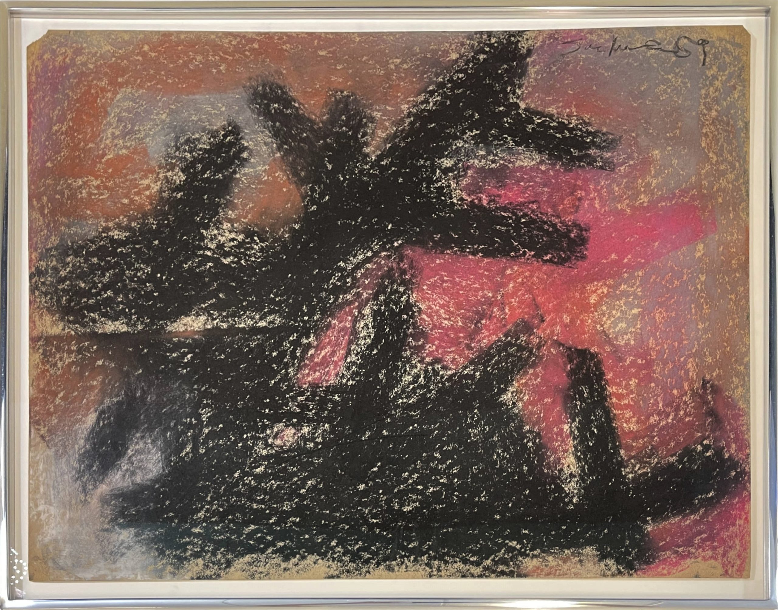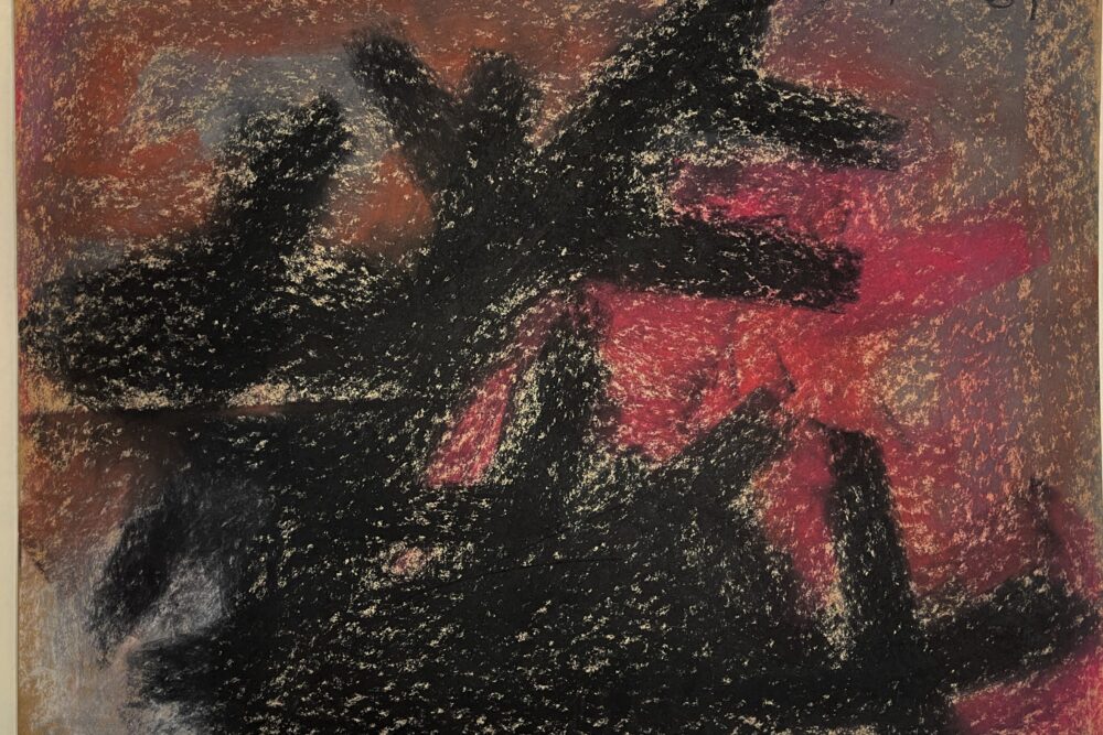 Carroll Sockwell, a Washington native, lived his entire life in Washington except for 1959, which he spent in New York City.  This work, then, is one of few works extant from Sockwell’s New York sojourn.  This work speaks to the iconographic works of Franz Kline but reflecting Sockwell’s facility with oil pastel, texture, and color.