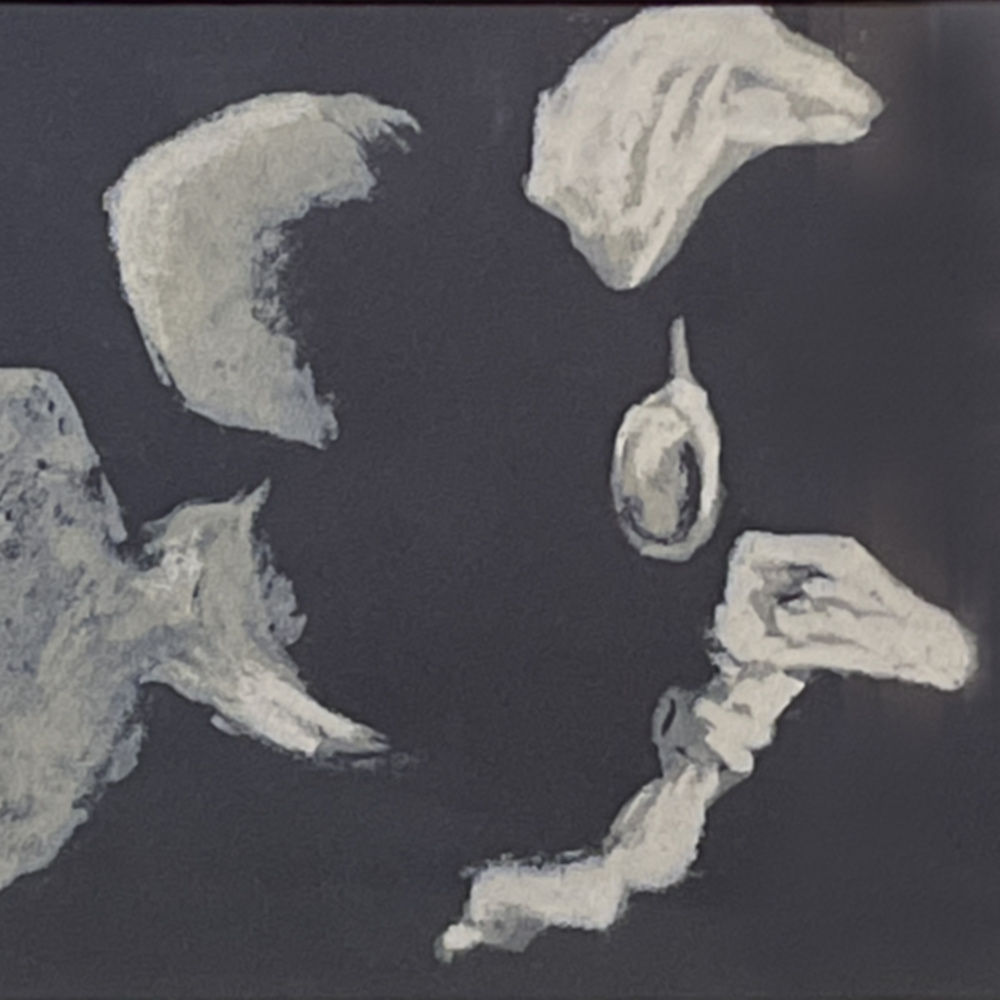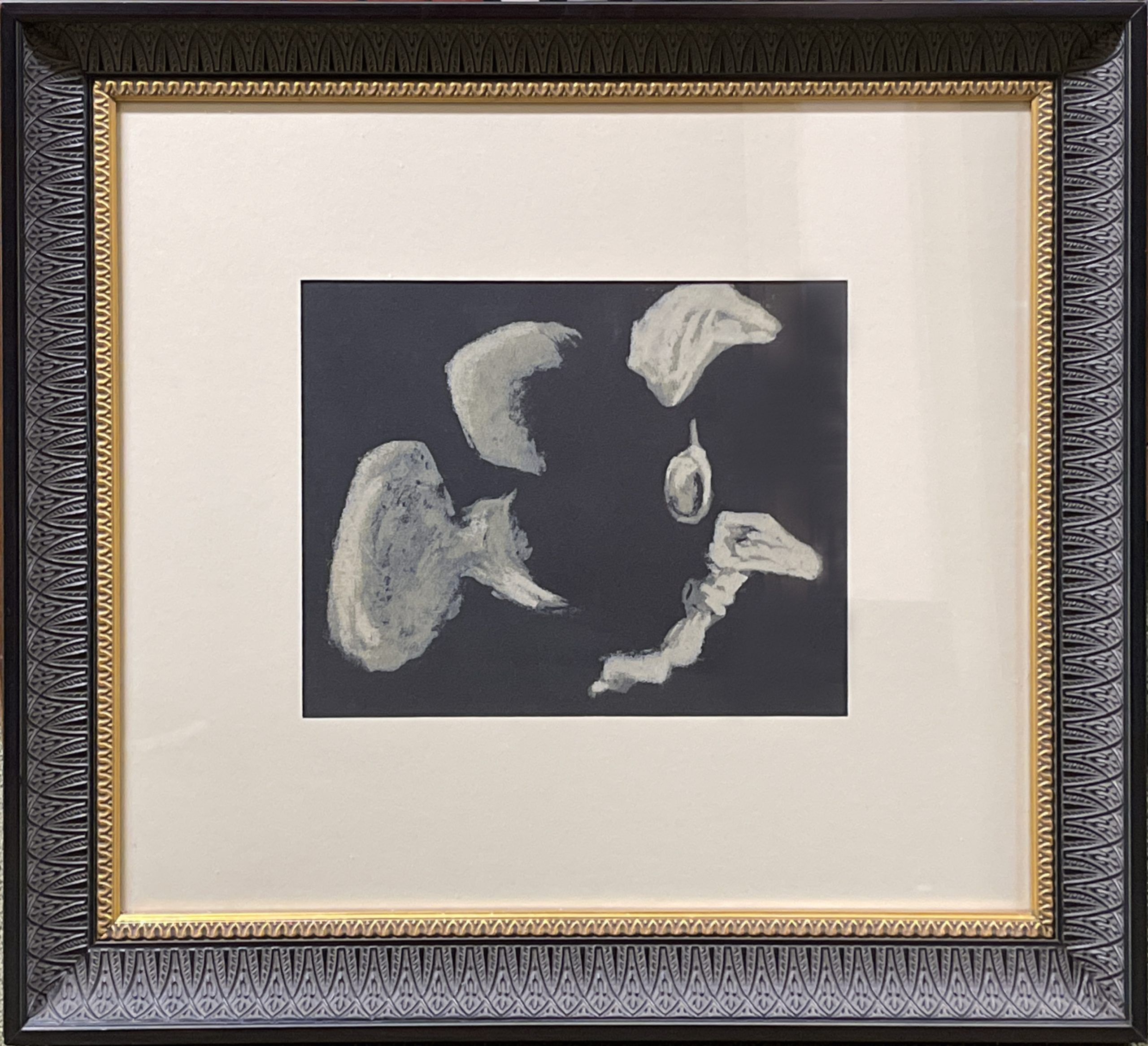 Silkscreen (serigraph) in multiple colors on dark brown background, printed on fine artist’s paper.