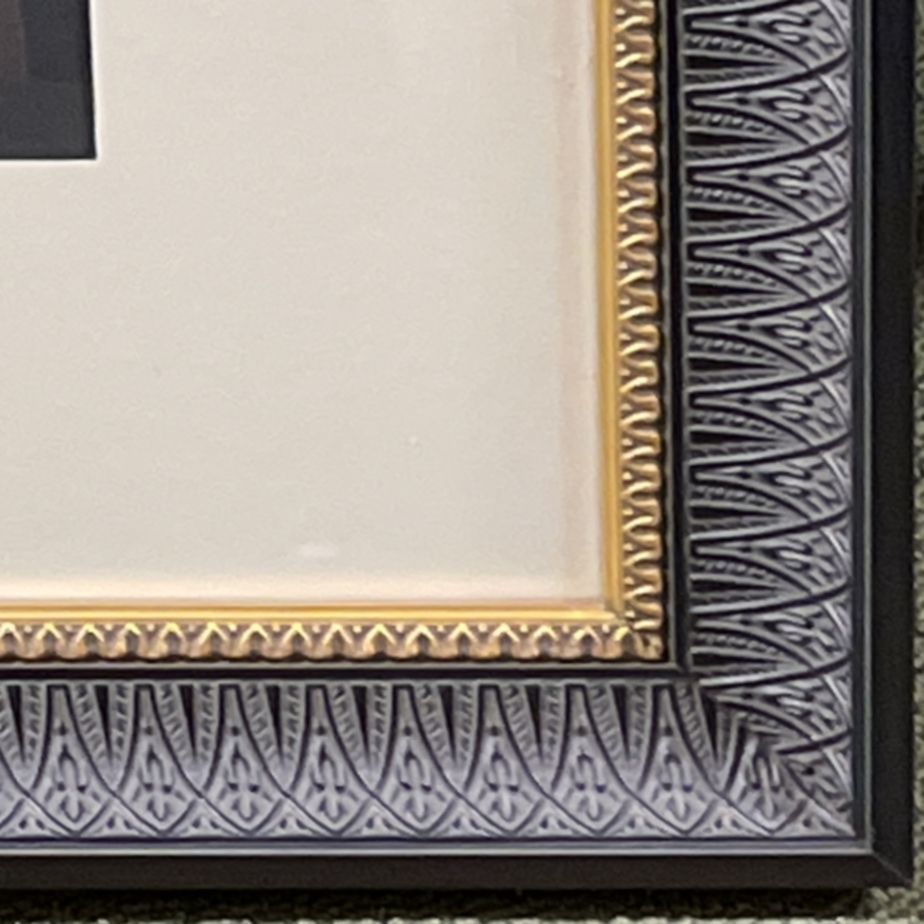 Custom matted and framed in a fine Walnut frame behind 99.9% UV-filtering art glass using strictly conservation-grade materials.