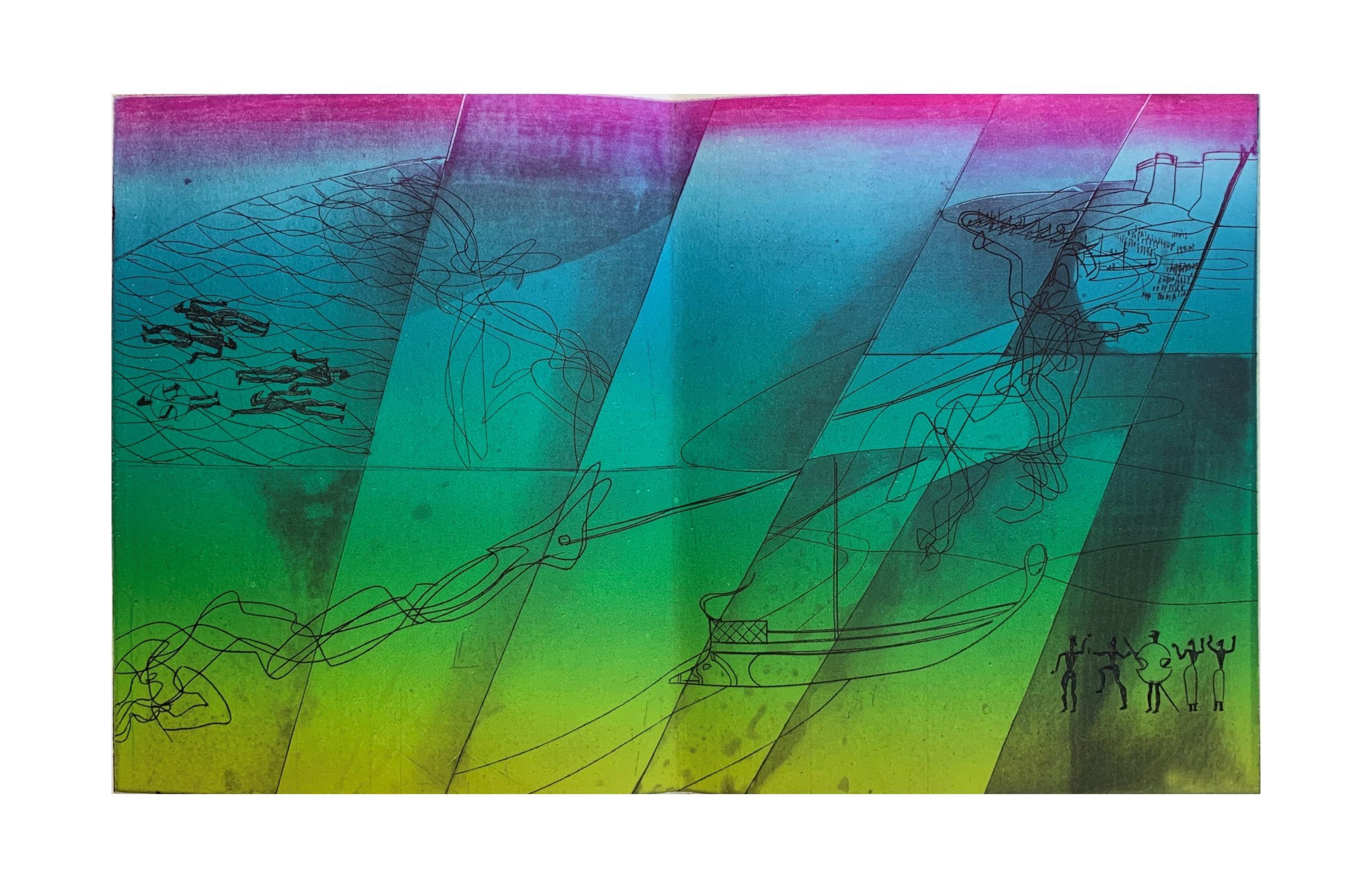 Some of the plates from the Hektor portfolio were printed by Hayter at Atelier 17 in Paris and others by Jack Shirreff at 107 Workshop Wiltshire in England.