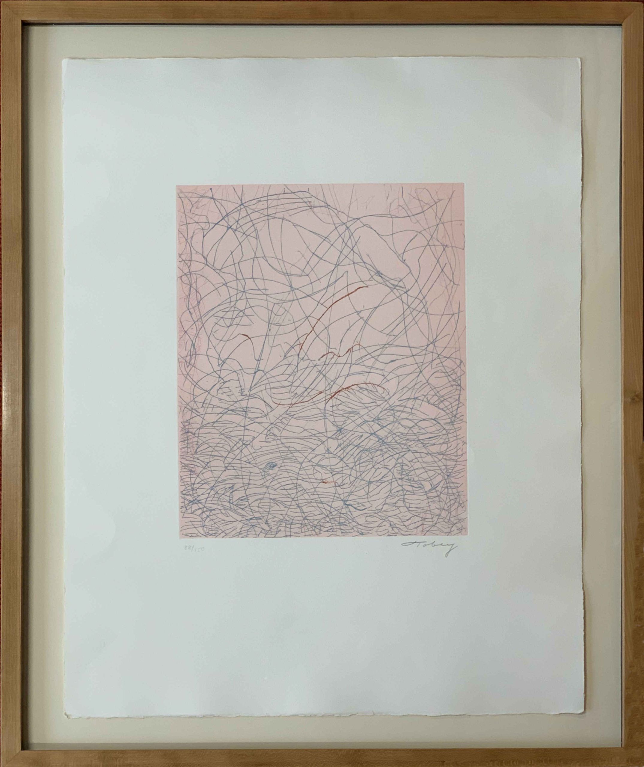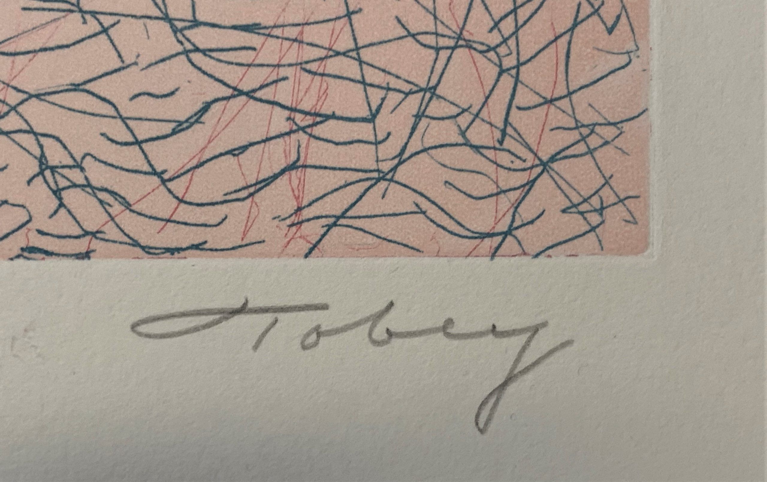 In the late 1930s, Tobey developed a style of work that used the layering of numerous transparent and opaque brushstrokes within the composition. Initially, the lines were part of a figurative composition that highlighted realistic elements.  Eventually, though, the technique evolved into an inward type of meditative abstraction that covered the entire composition.  This style marked an important development in abstraction, highlighting the journey from true abstraction to the lines, shapes, colors, and light independently forming the work.