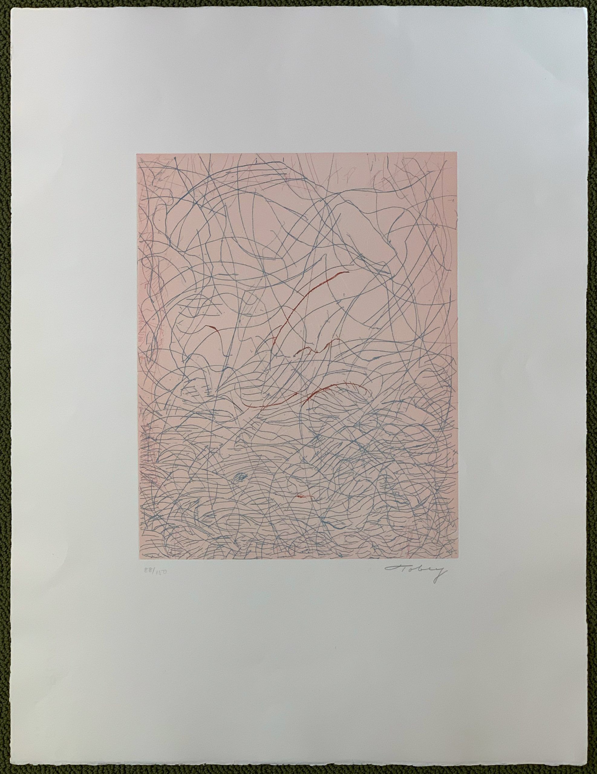 This work is an excellent example of Mark Tobey’s “white writing”.