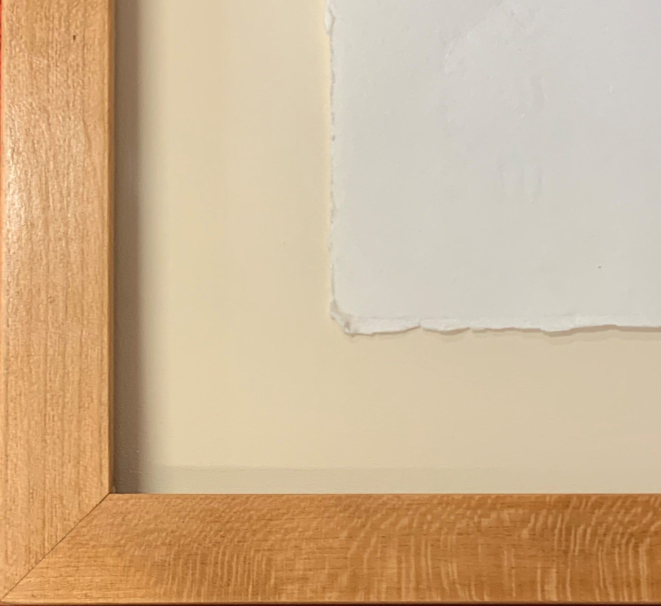 This work is floated and custom framed in a solid cherry frame behind 99% UV-Filtering Plexiglass.  The glazing is lifted off the work with spacers.  Framed with all conservation materials.