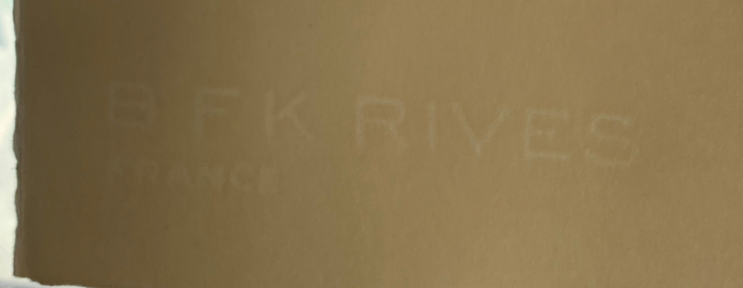 This work is floated and custom framed in a solid cherry frame behind 99% UV-filtering Plexiglass.  The glazing is lifted off the work with spacers.  Framed with all conservation materials.