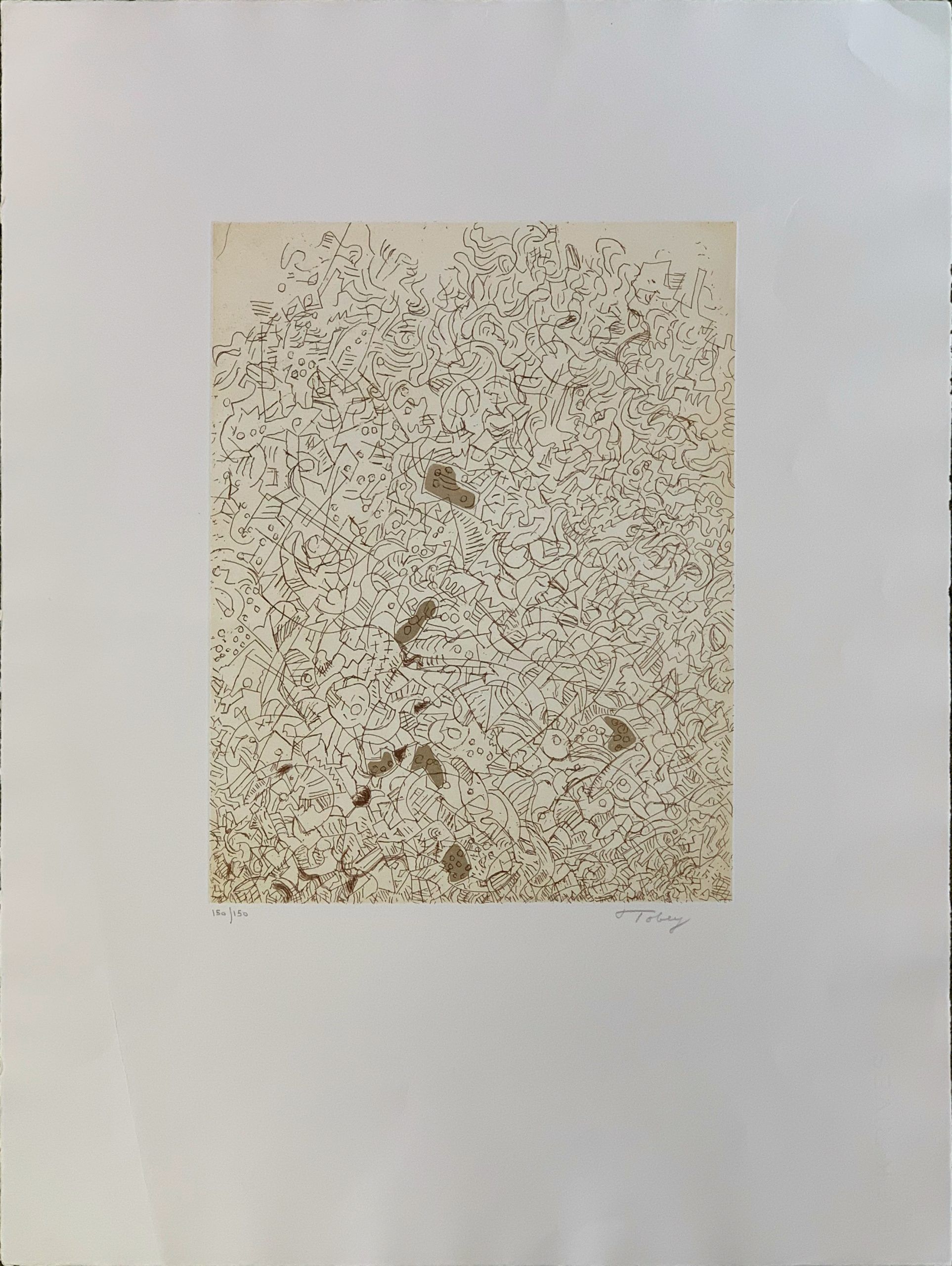 This work is an excellent example of Mark Tobey’s “white writing”.