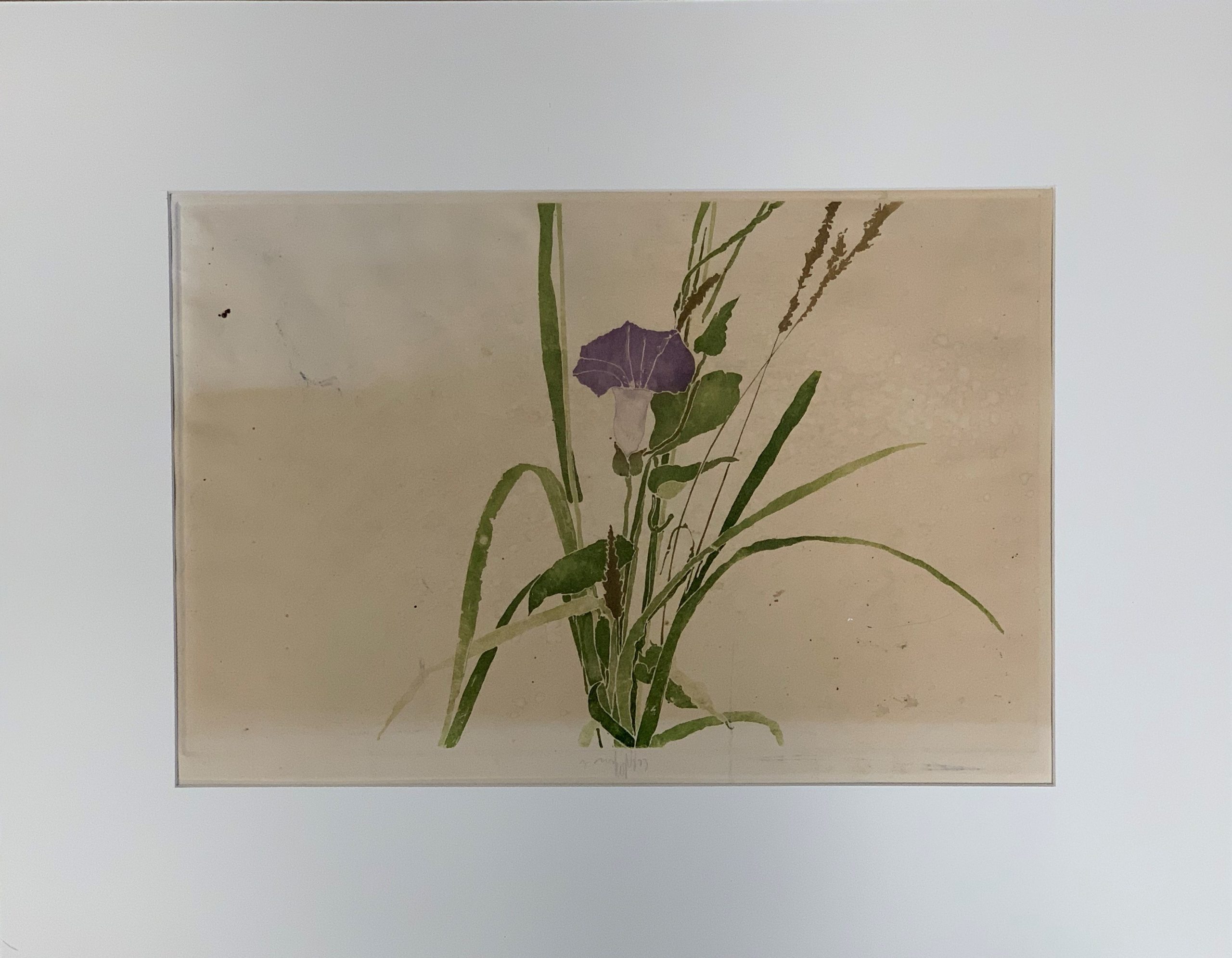 Framed and matted in an oiled-walnut frame behind 99% UV-Filtering Plexiglass. All conservation materials.