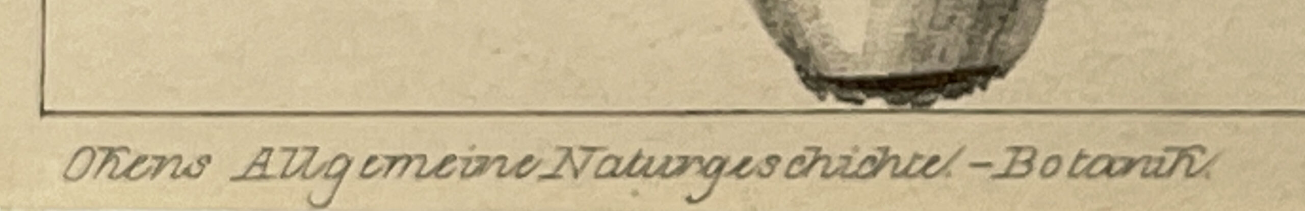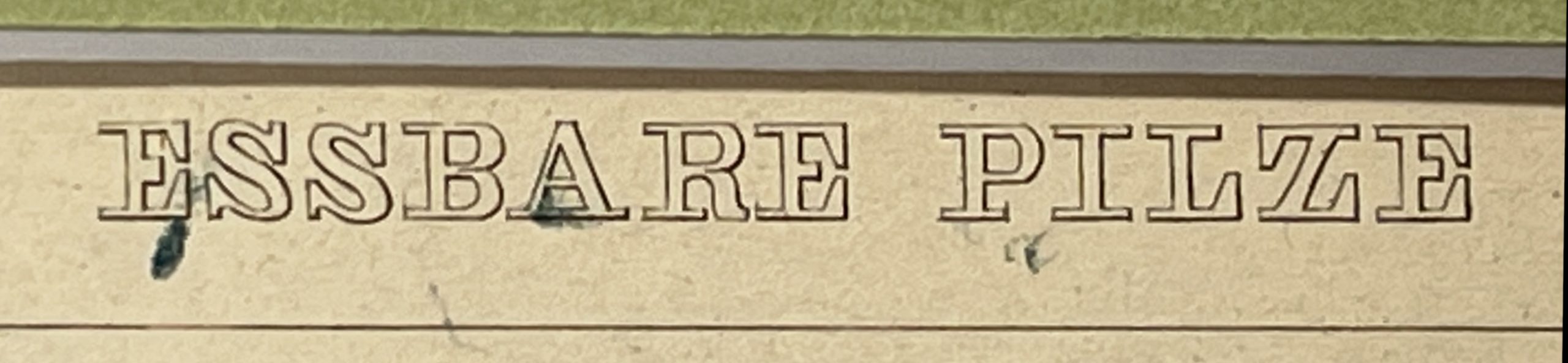 A beautifully printed lithograph showing mushrooms that are safe to eat.  Published by Oken’s Natural History.
