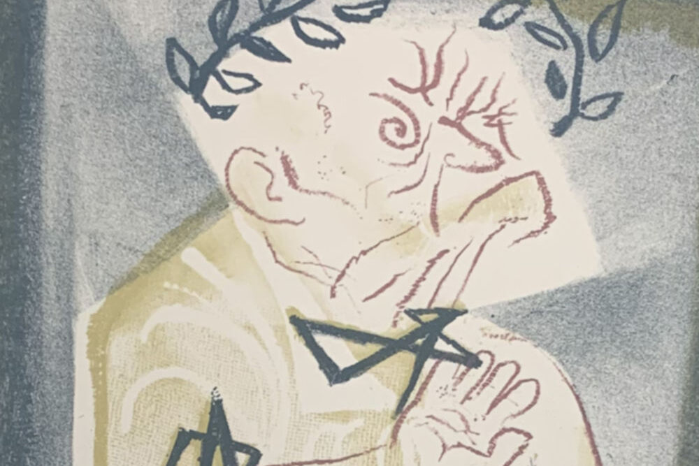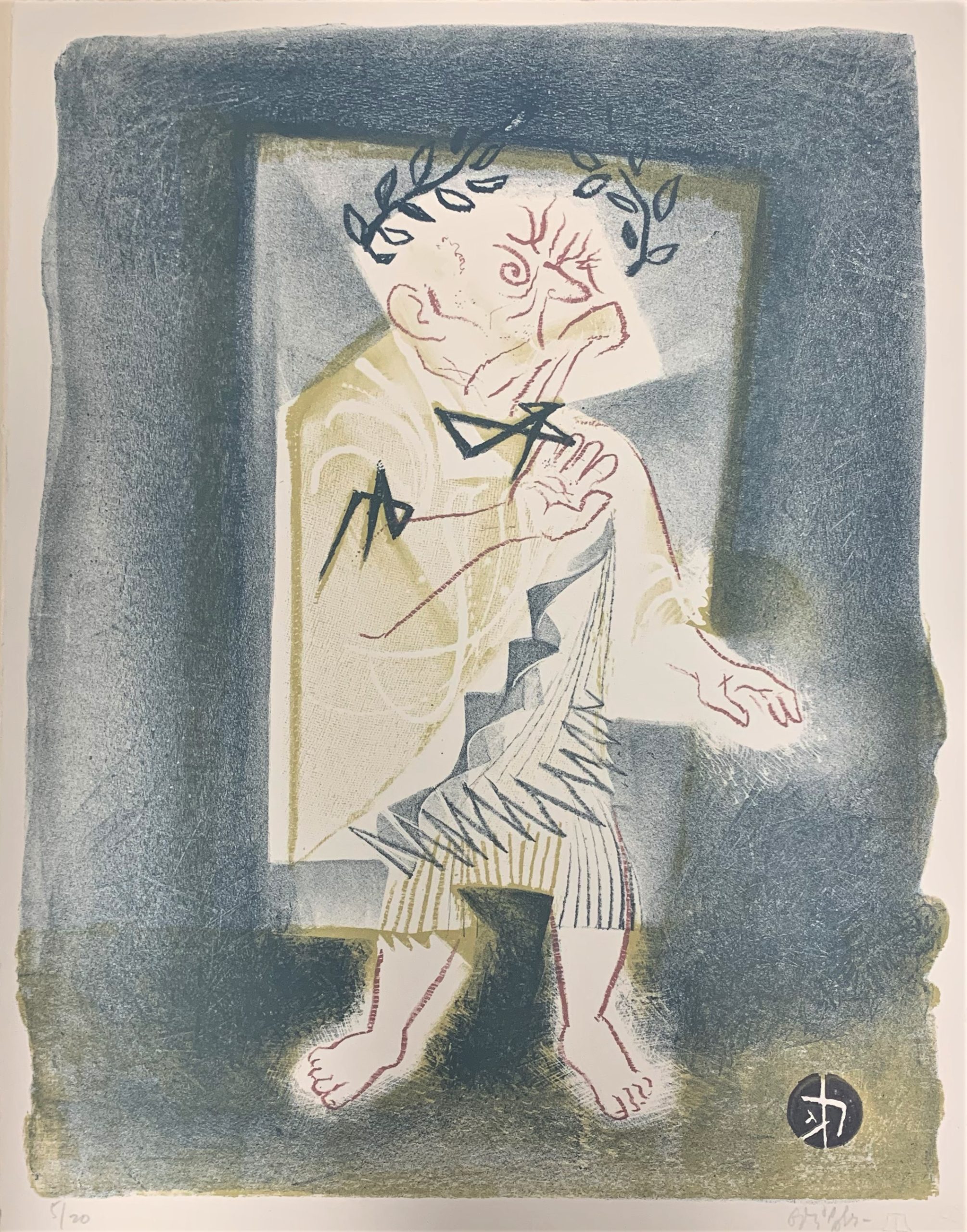 This lithograph was printed in a sequence of three colors (yellow-gray followed by blue-gray then red-brown).