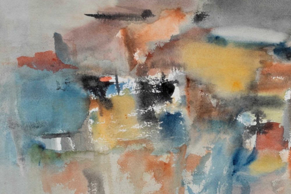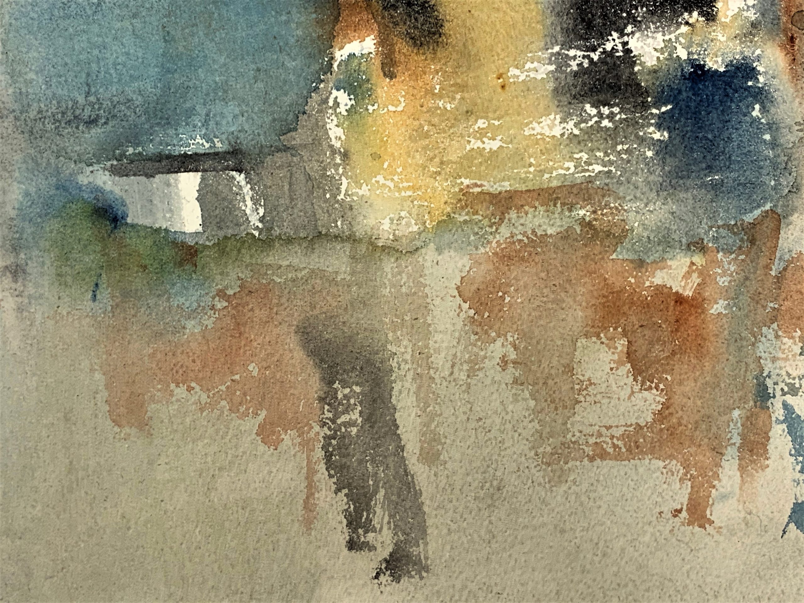 This watercolor shows Loew at his best. His use of colors across the palette—dark and brooding and soft and pastel—creates evocative and compelling works. Loew is one of few abstractionists who paint abstractions of real items, though that is not always entirely clear to the viewer.