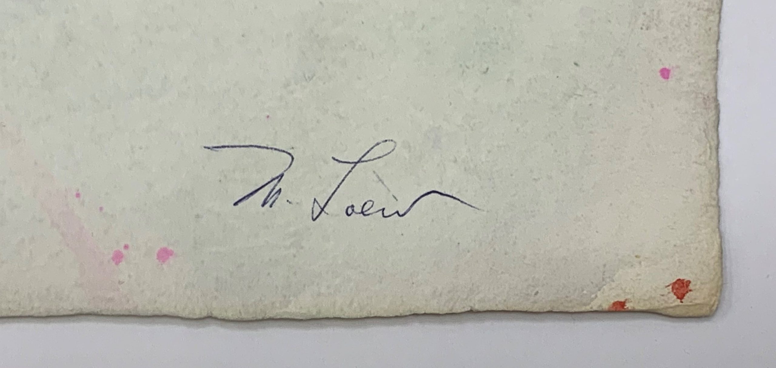 This work, identified by Loew’s estate as 1970s, shows Loew at his best.  His use of colors across the palette—dark and brooding and soft and pastel—creates evocative and compelling works.  Loew is one of few abstractionists who paint abstractions of real items, though that is not always entirely clear to the viewer.