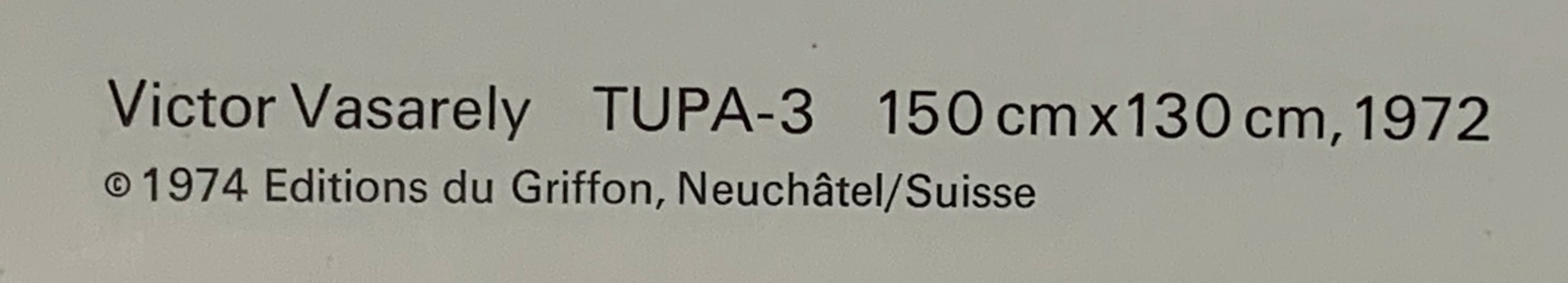 The power of héliogravure is evident in this print, TUPA-3, from the Progressions 3 portfolio. From Vasarely’s 1968 painting.