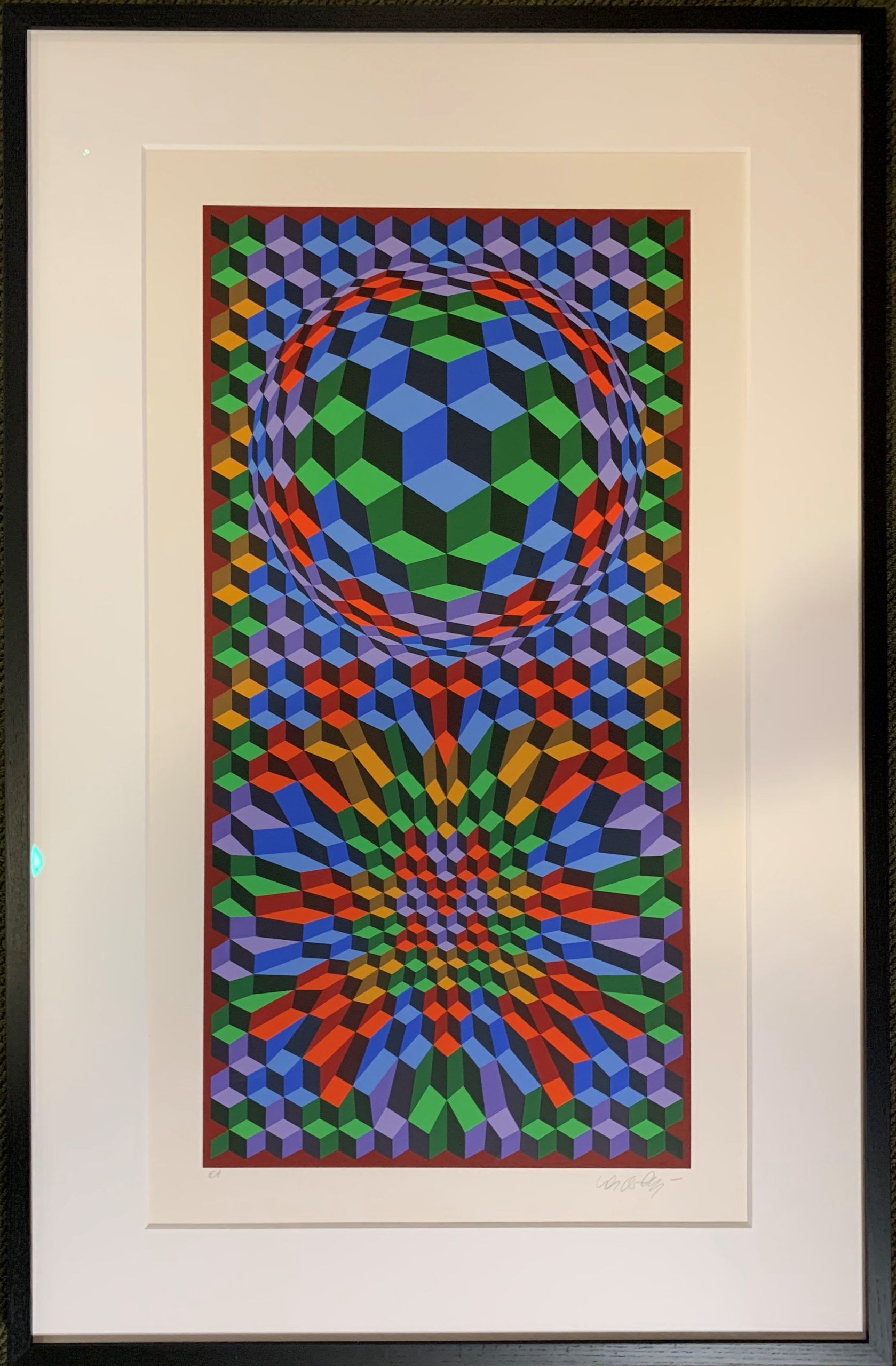 Framed in ash, hand-painted in black with an 8-ply conservation-grade mat. It is glazed with Optium, a museum-grade plexiglass which eliminates nearly all glare and offers the maximum-available UV protection.