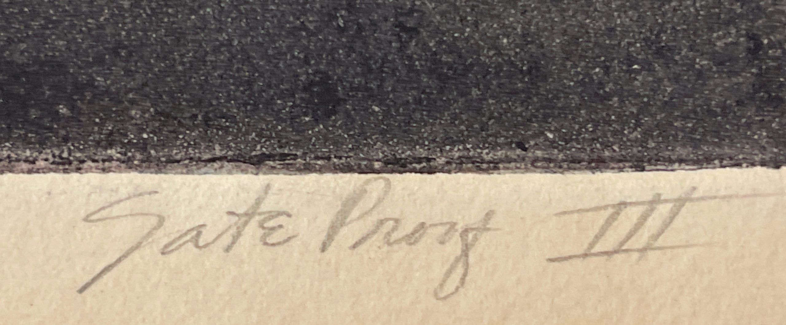 Signed, with date, en recto lower right. Titled en recto lower center.  Editioned en recto lower left.