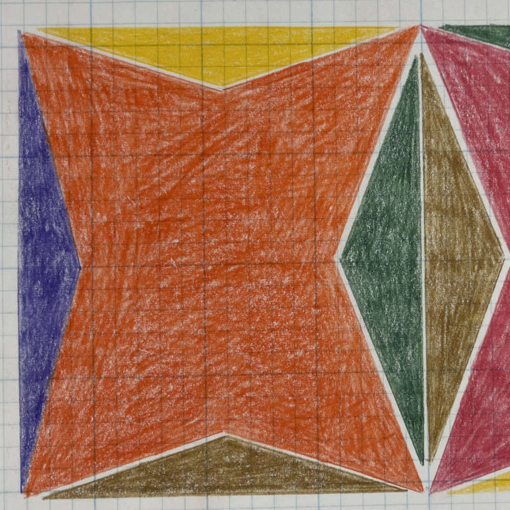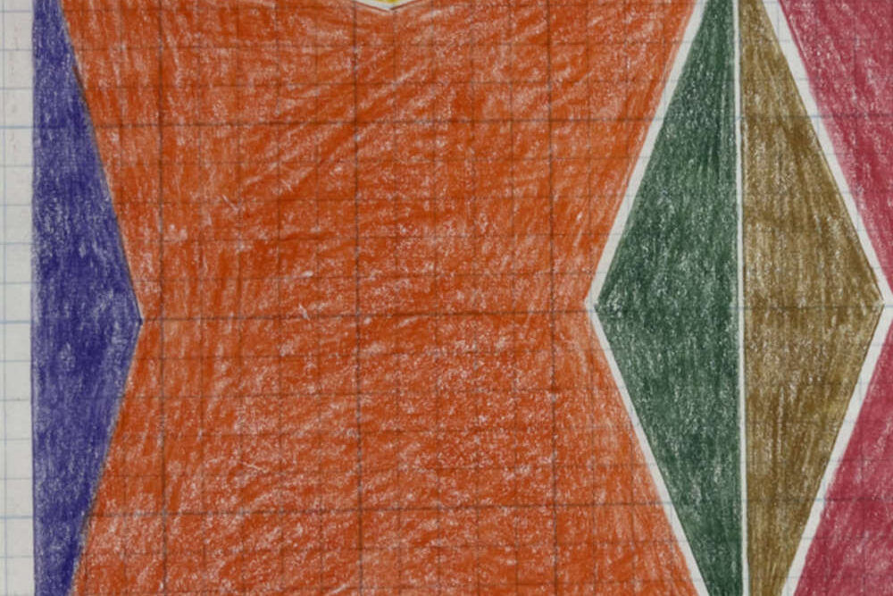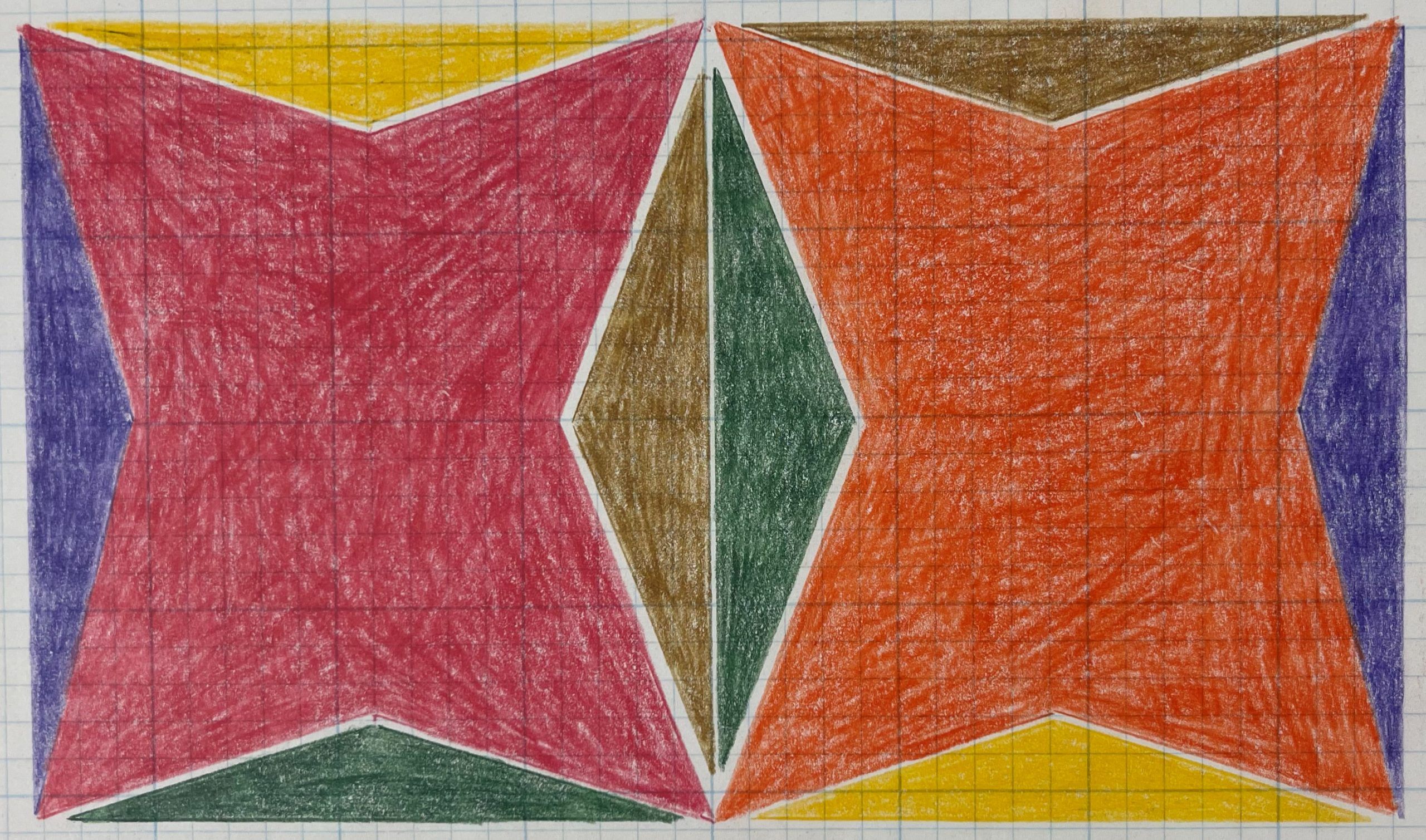Colored pencil on blue-gridded graph paper