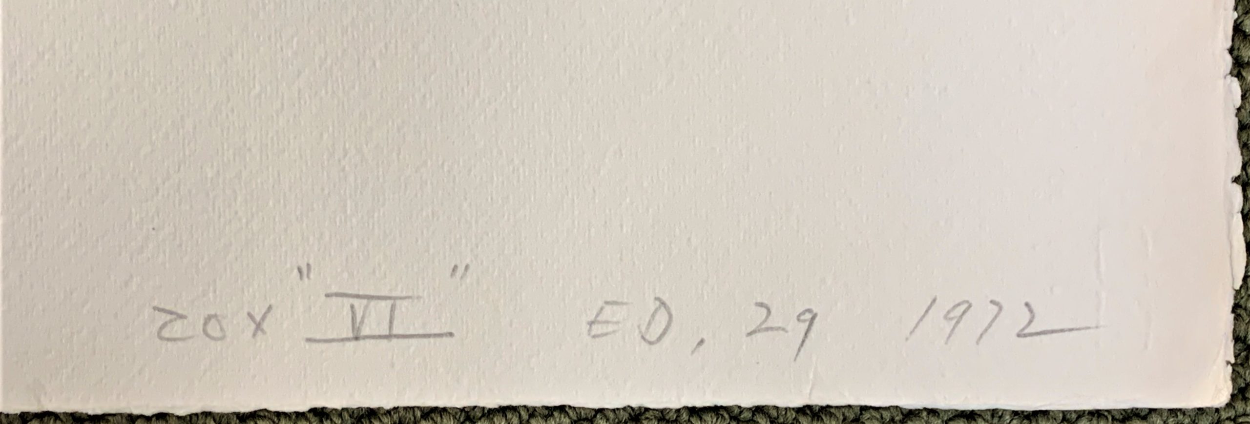 Signed, numbered, dated, and titled in pencil by the artist en recto lower right. Marked “ED. 29”